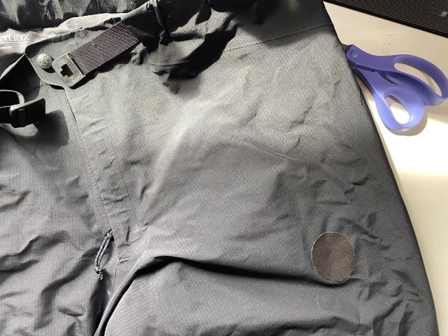 Some Tenacious Tape fixes made on my jacket and my husband's rain pants. You can even buy the tape in precut shapes - like this Bigfoot patch!